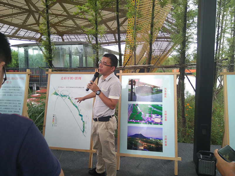 蘭溪市政管理處主任張正權在介紹蘭溪揚子江公園海綿城市建設成果