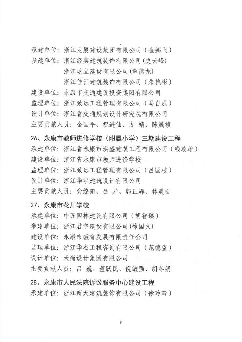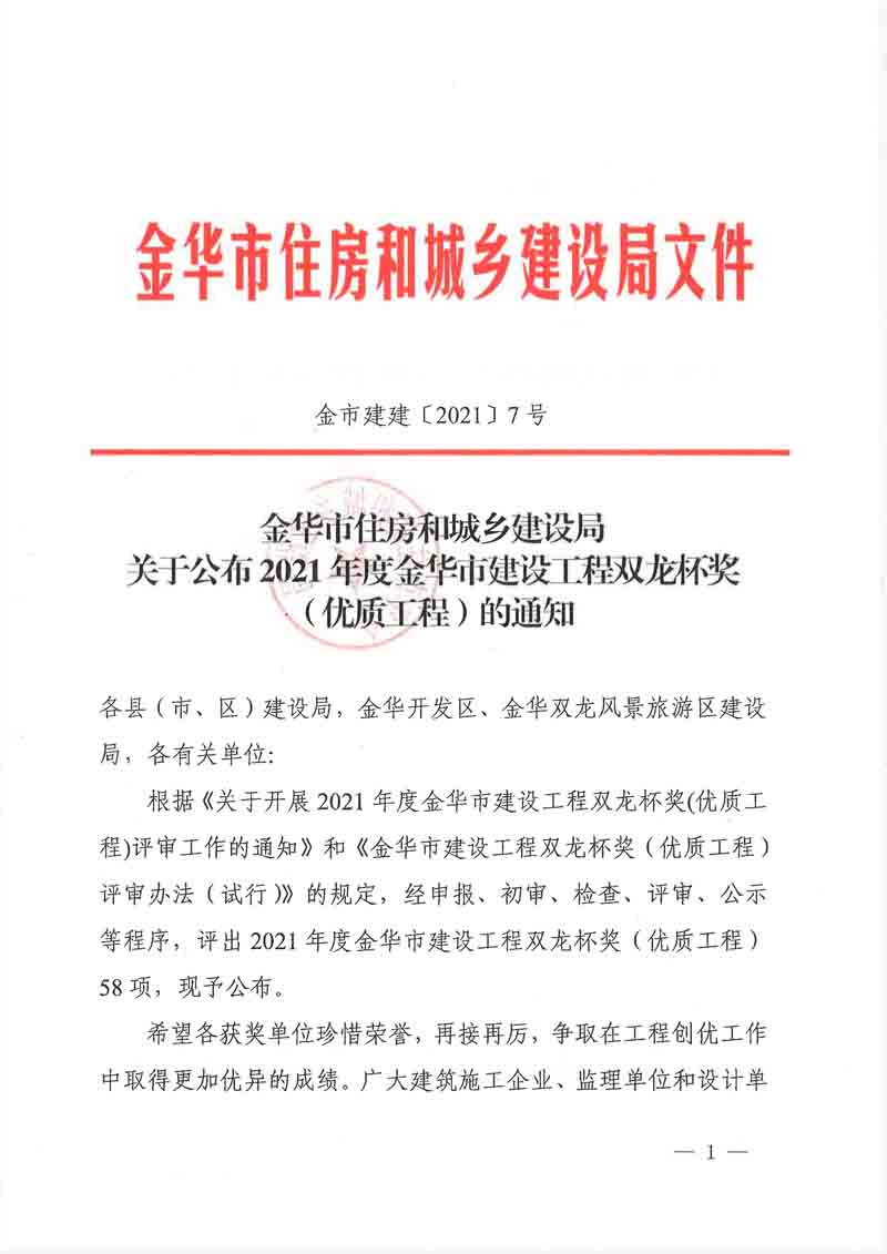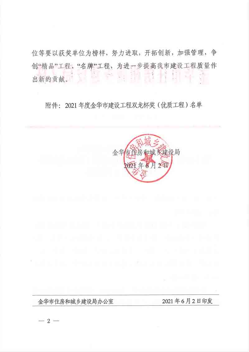 2021金華市建設工程雙龍杯