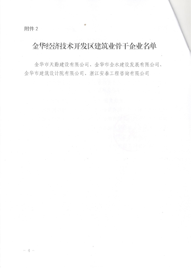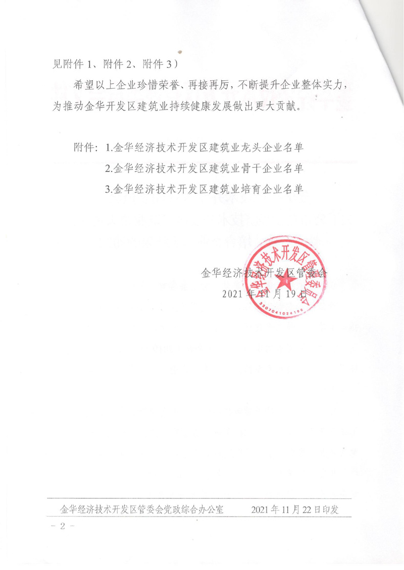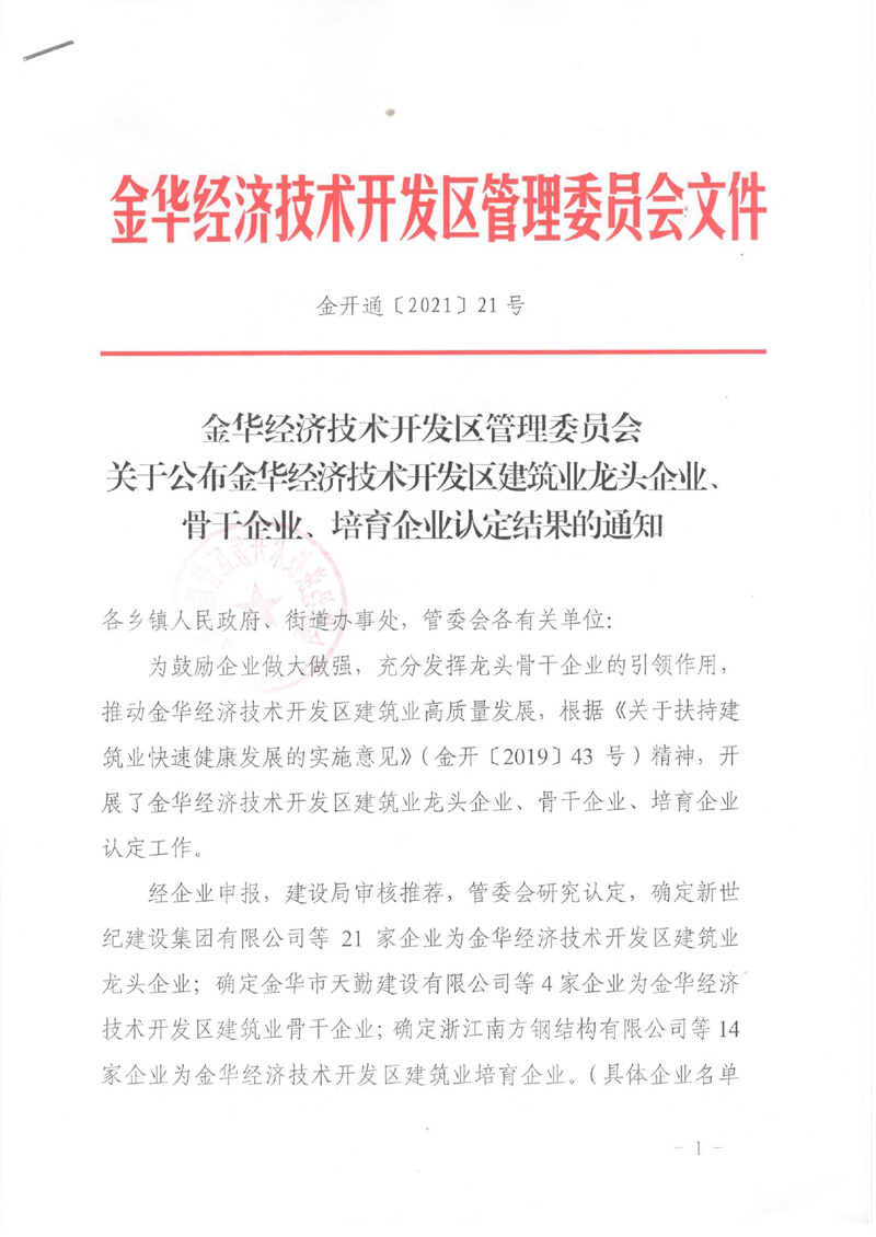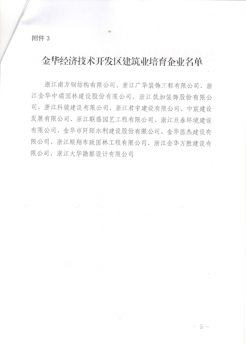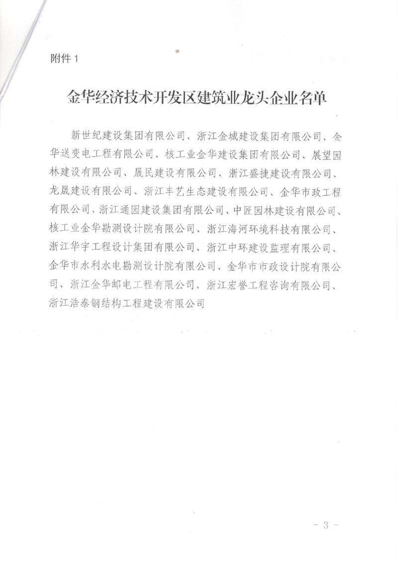 關(guān)于公布金華經(jīng)濟(jì)技術(shù)開(kāi)發(fā)區(qū)建筑業(yè)龍頭企業(yè)、骨干企業(yè)、培育企業(yè)認(rèn)定結(jié)果的通知